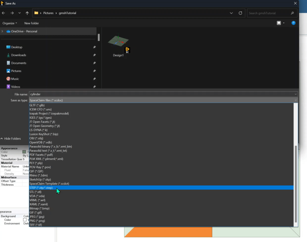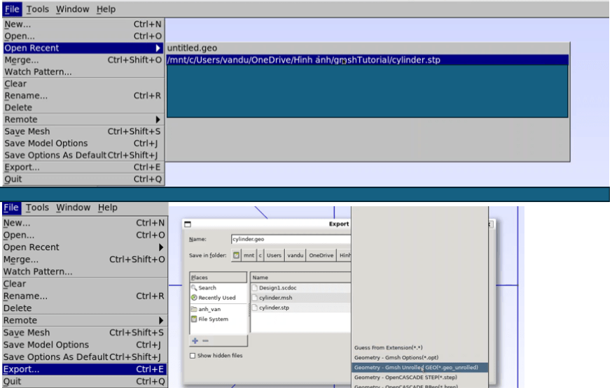 Step3: Import step file to Gmsh, then export Geo file (cylinder.geo).